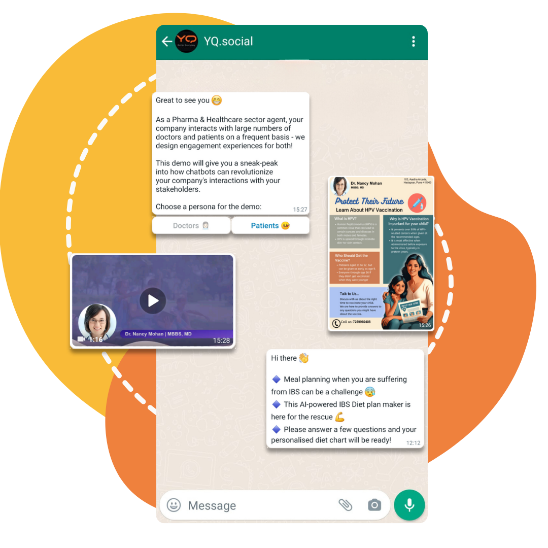 Deliver a delightful medical education experience to HCPs right within WhatsApp. Share content, register HCPs for CME events, follow-up, and much more